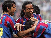 چیمپیئنز لیگ کے فائنل میں برطانوی کلب آرسنل کو ہسپانوی کلب بارسلونا کے ہاتھوں شکست ہوئی۔ پیرس کے سٹاڈ دی فرانس سٹیڈیم میں ہونے والے میچ کے سینتیسویں منٹ میں آرسنل نے سول کیمبل کے گول کے ذریعے برتری حاصل کر لی تھی لیکن گول کیپر لیہمن کو سرخ کارڈ دکھائے جانے کے بعد دس کھلاڑیوں سے کھیلنے والی آرسنل کی ٹیم اس برتری کو برقرار نہ رکھ سکی۔ پہلے میچ کے چھہترویں منٹ میں بارسلونا کے سٹرائیکر ایٹو نے گول کر کے میچ برابر کر دیا اور بعد میں جولیانو بلیٹی نے گول کر کے اپنی ٹیم کو برتری دلا دی۔ اس کے بعد بارسلونا نے آرسنل کو سنبھلنے کا موقع نہ دیا اور میچ ایک کے مقابلے میں دو گول سے جیت لیا۔ میچ کو اسی ہزار تماشائیوں نے دیکھا۔ | اسی بارے میں رونالدینو، سال کے بہترین کھلاڑی21 December, 2004 | کھیل جاپان نے چین کو شکست دیدی07 August, 2004 | کھیل فٹبالر کا ’فاشِسٹ‘ سیلوٹ 09 January, 2005 | کھیل | ||||||||||||||||||||||||||||||||||||||||