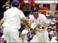 ایشز سیریز کے دوسرے ٹیسٹ میچ کے دوسرے روز انگلینڈ کی ٹیم نے آسٹریلیا کی پہلی وکٹ حاصل کر لی ہے۔ آؤٹ ہونے والے آسٹریلوی کھلاڑی جسٹن لینگر تھے جو چار رنز بنا کر کپتان فلنٹاف کی گیند پر پیٹرسن کے ہاتھوں سلپ میں کیچ ہوئے۔ اس سے پہلے انگلینڈ نے 551 رنز چھ کھلاڑی آؤٹ پر اپنی اننگز ختم کرنے کا اعلان کر دیا تھا۔ انگلینڈ کی طرف سے فلنٹاف 38 جبکہ ایشلے جائلز 27 رنز پر ناٹ آؤٹ رہے۔ انگلینڈ کے مڈل آرڈر بیٹسمین پال کولنگوڈ نے ڈبل سنچری بنائی جبکہ کیون پیٹرسن 158 رنز بنا کر رن آؤٹ ہو گئے۔ کیون پیٹرسن اور پال کولنگوڈ کی شراکت میں 310 رنز بنے۔ انگلینڈ کی طرف سے آؤٹ ہونے والے چھٹے کھلاڑی گیرانٹ جونز تھے جو صرف ایک رن بنا کر شین وارن کی گیند پر ڈیمیئل کے ہاتھوں کیچ ہوئے۔ برسبین میں کھیل جانے والے پہلے ٹیسٹ میچ میں آسٹریلیا نے انگلینڈ کو با آسانی ہرا دیا تھا۔ دوسرے ٹیسٹ میں انگلینڈ نے ٹاس جیت کر بیٹنگ کا فیصلہ کیا اور پہلے دن کھیل کے اختتام تک اس نے تین وکٹوں کے نقصان پر 266 رنز سکور کیے تھے۔ گولنگوڈ اٹھانوے اور پیٹرسن ساٹھ رنز بنا کر ناٹ آؤٹ تھے۔ | اسی بارے میں پہلے ٹیسٹ میں آسٹریلیا کی جیت27 November, 2006 | کھیل جنوبی افریقہ بھارت سے جیت گیا26 November, 2006 | کھیل ’آسٹریلوی کرکٹ ٹیم غیر مہذب ہے‘10 November, 2006 | کھیل | ||||||||||||||||||||||||||||||||||||||||