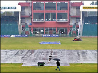 راولپنڈی میں تین دن سے جاری دھواں دھار بارش سے راولپنڈی کرکٹ سٹیڈیم کے بہت سے حصوں میں پانی جمع ہوجانے کی وجہ سے منسوخ کر دیا گیا۔ اس صورت حال میں ایمپائر ڈیرل ہارپر اور علیم ڈار کے پاس میچ کو منسوخ کرنے کے سوا اور کوئی چارہ نہیں بچا تھا۔