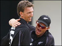 سینٹ لوشیا میں گروپ سی کے ایک میچ میں نیوزی لینڈ کے 363 رنز کے جواب میں کینیڈا کی پوری ٹیم 249 رنز بنا کر آؤٹ ہو گئی۔ اس طرح نیوزی لینڈ یہ میچ 114 رنز سے جیت گیا۔ کینیڈا نے اپنی اننگز کا آغاز تو بڑے جارحانہ انداز سے کیا لیکن اوپنر ڈیویسن کے آؤٹ ہونے کے بعد رنز بنانے کی رفتار سست پڑ گئی اور نیوزی لینڈ کے کھلاڑی ایک کے بعد ایک آؤٹ ہوتے چلے گئے۔ | اسی بارے میں نیوزی لینڈ نے کینیڈا کو ہرا دیا22 March, 2007 | کھیل شین بونڈ، نیوزی لینڈ کا سہارا09 March, 2007 | کھیل | ||||||||||||||||||||||||||||||||||||||||