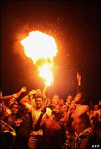 ورلڈ کپ میں جنوبی افریقہ کے خلاف بنگلہ دیش کی فتح کے بعد ڈھاکہ میں جشن کا سماں تھا اور ہزاروں کی تعداد میں لوگ سڑک پر نکل آئے۔ ڈھاکہ میں عوامی اجتماعات پر پابندی کے باوجود ہزاروں کی تعداد میں لوگ رات دیرگئے تک خوشیاں مناتے رہے ہیں۔ ورلڈکپ کرکٹ کے سپر ایٹ مقابلوں میں بنگلہ دیش نے جنوبی افریقہ کو 67 رنز سے شکست دے دی ۔ بنگلہ دیش نے پہلے کھیلتے ہوئے آٹھ وکٹوں کے نقصان پر 251 رنز بنائے جبکہ جنوبی افریقہ کی ٹیم صرف 184 رنز بنا کر آؤٹ ہو گئی۔ بنگلہ دیش کی نگران حکومت کے سربراہ فخرالدین احمد نے ٹیم کو شاندار فتخ پر مبارک باد پیش کی۔ بنگلہ دیش کے اخبارات نے ٹیم کی فتح پر خصوصی ضمیمے شائع کیے۔ بنگلہ دیش اس سے پہلے انڈیا کی ٹیم کو بھی ہرا چکی ہے۔ بنگلہ دیش میں کرکٹ کے شوقین ٹیم کی فتح کے قومی جھنڈے اٹھائے ہوئے سڑکوں پر گھومتے رہے۔ بنگلہ دیش میں جنوری کے بعد ایمرجنسی نافذ ہے لیکن پولیس نے کرکٹ کے مداحوں کے راستے میں کوئی روکاوٹ کھڑی نہیں کی۔ | اسی بارے میں بنگلہ دیش کی تاریخی فتح 07 April, 2007 | کھیل بنگلہ دیش کی تاریخی جیت17 March, 2007 | کھیل بنگلہ دیش’اِن‘ انڈیا ’آؤٹ‘25 March, 2007 | کھیل شکست پر بھارتی شائقین برہم18 March, 2007 | کھیل ٹرینیڈاڈ: بنگلہ دیش بمقابلہ برمودا25 March, 2007 | کھیل | ||||||||||||||||||||||||||||||||||||||||