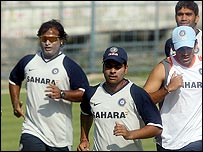 بھارت کے بلے باز سچن تندولکر بنگلہ دیش کے دورے سے پہلے پریکٹس کے دوران زخمی ہو گئے ہیں۔ ٹیم کے مینجر سریندر بھاوے نے بتایا ہے کہ تندولکر کے دائیں پیر میں موچ آگئی تھی۔ ان کا کہنا تھا کہ ان کے پیر پر برف لگائی گئی اور امکان ہے کہ انہیں مزید ایکس رے اور دیگر ٹیسٹ کرانے پڑیں۔ تاہم مینیجر کا کہنا تھا کہ تندولکر کی چوٹ معمولی معلوم ہوتی ہے۔ اطلاعات کے مطابق تندولکر کو چوٹ اس وقت لگی جب وہ شانتاکمارن سریسنتھ کی ایک باؤنسر کو کھیلنے کی کوشش کر رہے تھے۔ ٹیم کے فِزیوتھراپسٹ نے چوٹ کا جائزہ لیا جس کے بعد تندولکر لنگڑاتے ہوئے ڈریسنگ روم واپس روانہ ہو گئے۔ بھارتی ٹیم کا کلکتہ میں منعقد یہ تربیتی کیمپ ایک ہفتے کی مدت کا ہے۔ ٹیم پیر سات مئی کو بنگلہ دیش روانہ ہوگی۔ راہول ڈراوڈ ٹیم کی کپتانی کر رہے ہیں اور روی شاستری ٹیم کے کوچ ہیں۔ تندولکر کو اس دوے پر صرف ٹیسٹ ٹیم میں شامل کیا گیا ہے۔