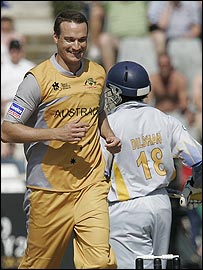 ٹونٹی ٹونٹی ورلڈ کپ کے ایک اہم پول میچ میں جمعرات کو آسٹریلیا نے سری لنکا کو شکست دے کر سیمی فائنل میں اپنی شرکت کو یقینی بنا لیا ہے۔ جنوبی افریقہ کے شہر کیپ ٹاؤن میں کھیلے گئے اس میچ میں آسٹریلیا کے ہاتھوں بری طرح شکست کھانے کے بعد سری لنکا اس ٹورنامنٹ سے باہر ہو گیا ہے۔ سری لنکا کا کوئی کھلاڑی بھی جم کر نہ کھیل سکا اور پوری ٹیم مقررہ بیس اوور بھی نہ کھیل سکی اور انیس اعشاریہ تین اوور میں ایک سو ایک رنز بنا کر پویلین لوٹ گئی۔ ٹونٹی ٹونٹی عالمی کپ کے اب تک ہونے والے میچوں میں یہ واحد میچ تھا جس میں چالیس اوور کا کھیل بھی نہ ہو سکا۔ آسٹریلیا نے ایک سو ایک رنز کا ہدف صرف دس اوور میں حاصل کر لیا اور سری لنکا کے بالر اس کا کوئی کھلاڑی آؤٹ نہ کر سکے۔ میتھیو ہیڈن نے اڑتیس گیندوں پر سات چوکوں اور دو چھکوں کی مدد سے اٹھاون رنز بنائے۔ جبکہ گلکرسٹ نے اڑتیس رنز بنائے۔ رکی پونٹنگ ہمسٹرنگ کی تکلیف کے سبب ٹورنامنٹ سے باہر ہوگئے ہیں ان کی جگہ ایڈم گلکرسٹ نے کپتانی کی اور ٹاس جیت کر سری لنکا کو بیٹنگ دی۔ ایسا دکھائی دیتا تھا کہ سری لنکن ٹیم سنتھ جےسوریا پر ہی انحصار کرتے ہوئے جنوبی افریقہ آئی تھی۔ پاکستان کے خلاف میچ میں وہ جلد آؤٹ ہوئے تو سری لنکن بیٹنگ ناکام ہوگئی۔ بنگلہ دیش کے خلاف وہ صفر پر آؤٹ ہوئے تو ان کی ٹیم مشکل میں گھرگئی۔ اس مرتبہ بریٹ لی نے انہیں صفر پر ایل بی ڈبلیو آؤٹ کرکے سری لنکا کی مشکلات کا آغاز کیا جو وقت کے ساتھ کم ہونے کے بجائے بڑھتی چلی گئیں۔ 43 رنز پر سات وکٹیں گرجانے پر سری لنکا ٹوئنٹی ٹوئنٹی انٹرنیشنل کے سب سے کم اسکور73 کا ریکارڈ توڑتی نظرآرہی تھی لیکن دلشن اور واس نے اسے اس خفت سے بچالیا۔ بیس رنز کے عوض چار وکٹوں کے ساتھ سب سے کامیاب بولر اسٹورٹ کلارک مین آف دی میچ بھی قرار پائے۔ بریٹ لی اور بریکن نے دو دو وکٹیں حاصل کیں۔ ان بولرز کو اپنے فیلڈرز کا مکمل تعاون حاصل رہا۔ خصوصاً مائیکل کلارک کی فیلڈنگ نمایاں تھی جنہوں نے ڈائیو لگاکر فرویز ماہروف کا خوبصورت کیچ لیا۔ آسٹریلیا نے اپنے طوفانی اوپنرز گلکرسٹ اور ہیڈن کے ذریعے مطلوبہ سکور صرف گیارہویں اوور میں پورا کرلیا۔ گلکرسٹ 31 اور ہیڈن دو چھکوں اور سات چوکوں کی مدد سے58 رنز بناکر ناٹ آؤٹ رہے۔ | اسی بارے میں پاکستان نے سری لنکا کو ہرا دیا17 September, 2007 | کھیل بنگلہ دیش سری لنکا سے ہار گیا19 September, 2007 | کھیل بریٹ لی کی ہیٹ ٹرک، انگلینڈ کی ہار17 September, 2007 | کھیل ’آخری گیند پر رن کا یقین تھا‘16 September, 2007 | کھیل پاکستان سیمی فائنل میں 18 September, 2007 | کھیل ٹائیگرز چھائے لیکن جیتا جنوبی افریقہ16 September, 2007 | کھیل یوراج، چھ چھکے، انڈیا کی جیت 19 September, 2007 | کھیل | ||||||||||||||||||||||||||||||||||||||||