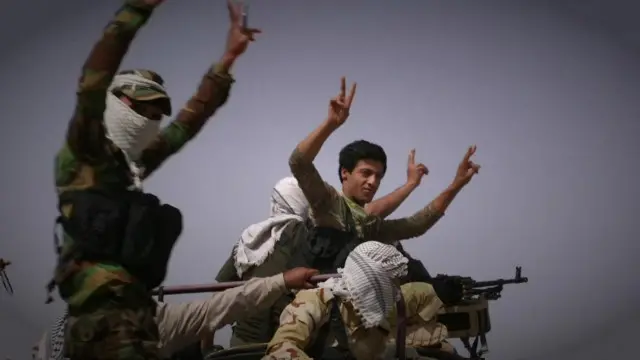 ایرانی حمایت یافتہ شیعہ ملیشیا نے جو کہ اس لڑائی میں حصہ لے رہی ہے گاؤں میں عمارتوں کی دیواروں پر ’شکریہ ایران‘ لکھا ہے۔