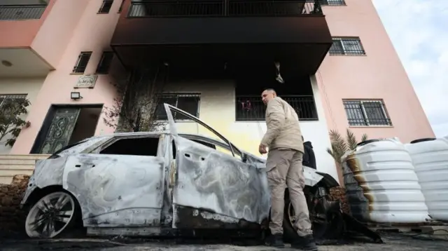 Фаластинлик бу банк менежери айтишича, келгиндилар Наблус яқинидаги Дайр ал-Ҳатоб қишлоғидаги уйини ўққа тутиб, унга ўт қўйган. Унинг ўзи ва болалари томга яшириниб, зўрға қутилиб қолганлар.