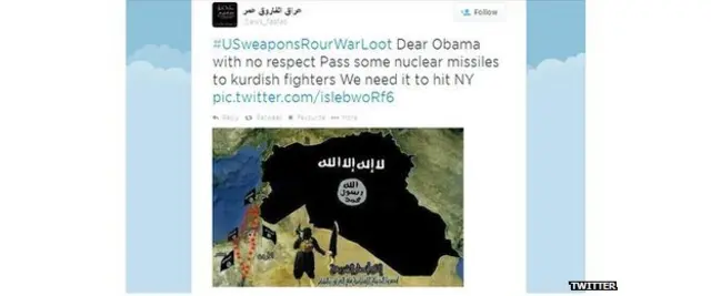 “Исломий Давлат” гоҳида аччиқ ҳазил, гоҳида қўрқинчли тасвирларини ишга солиб, Ғарбни Ироқ курдларига йўллаган ҳар қандай қурол-яроғи ўзларининг қўлларига тушиши билан огоҳлантиришга уринмоқда.