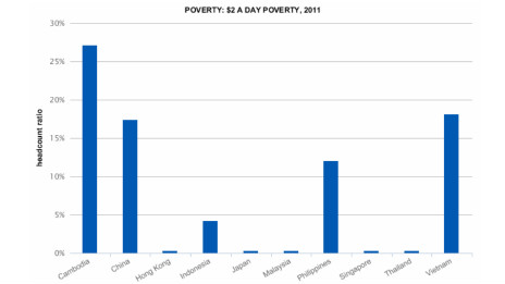 Đây là sự chênh lệch khá xa với các nước khác trong khu vực như Malaysia, Thái Lan, với chỉ số người lao động thu nhập thấp ở mức 2 đôla/ngày chiếm dưới 1% dân số. Hiện tại, mức lương cơ bản tại Thái Lan là gần 9,75 đôla/ngày.
