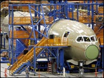Công ty Boeing loan báo đã hoàn tất khâu lắp ráp cuối cùng của chiếc máy bay phản lực 787 Dreamliner đầu tiên. Chiếc máy bay này ra đời tại xưởng sản xuất chính của công Boeing gần thành phố Seattle bang Washington gồm các linh kiện được chế tạo từ những nước xa xôi như là Italy và Nhật Bản. Boeing nay dự trù thực hiện chuyến bay thử nghiệm đầu tiên vào tháng Tám trước khi giao hàng cho các hãng hàng không vào tháng Năm 2008. Chiếc máy bay cở trung Dreamliner 787 là chiếc máy bay đầu tiên hoàn toàn được công ty Boeing thiết kế mới từ 10 năm nay, và cho tới nay, đã nhận được 568 đơn đặt hàng từ 44 hãng hàng không. Thành công của công ty Boeing - ít ra là cho tới nay - tương phản hẳn với các vấn đề mà công ty kình địch Airbus đang gặp phải với chiếc Airbus A380. Ngày giao hàng của chiếc máy bay không lồ hai tầng A380 hiện nay trễ hai năm vì phải thiết kế lại hệ thống giây điện. Airbus cho tới nay chỉ có được 161 đơn đặt hàng cho loại A380, mà theo đúng kế hoặch đáng lý ra sẽ được đưa vào sử dụng trước cuối năm nay. Cấu trúc khổng lồ Boeing nói rằng thân chính của loại Dreamliner 787 sẽ được chế tạo tại sáu nơi trên thế giới và rồi đưa về Seattle để lắp ráp.