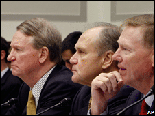 Doanh thu của GM, Ford và Chrysler đều giảm trong năm nay tại thị trường nội địa. Các công ty này bị coi là quá chậm trong việc đối phó với nhu cầu cần phải có xe nhỏ hơn và chạy tiết kiệm xăng hơn. Mới đây General Motors loan báo thua lỗ 4,2 tỷ đôla trong quý ba năm nay và cảnh báo khó khăn trầm trọng trong năm 2009 nếu thị trường không được cải thiện. Tập đoàn này cũng lên kế hoạch cắt giảm 5.400 việc làm. Hãng Ford cũng cho hay đã lỗ 2,98 tỷ đôla trong quý ba. Các hãng xe hơi của Nhật cũng đối diện khó khăn với doanh thu Honda giảm 32% trong tháng 11 và doanh thu Toyota giảm 34%. |