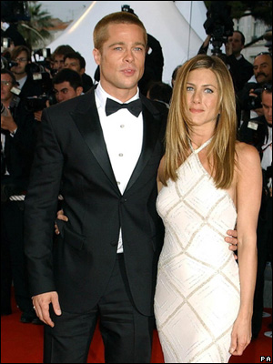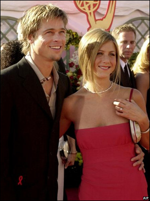 Mối tình của cô với diễn viên Brad Pitt thu hút nhiều chú ý. Ảnh này chụp năm 2000, hai tháng sau khi họ làm lễ kết hôn.