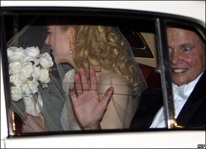 Kidman mặc bộ đồ cưới màu trắng truyền thống và đi cùng người cha trong chiếc xe limousine.