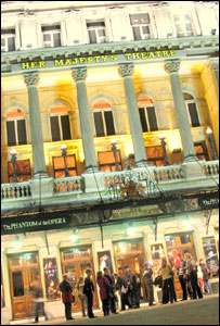 Một trong những vở nhạc kịch được công diễn lâu nhất ở Luân Đôn vừa bước sang tuổi 21 hồi đầu tuần này. Câu chuyện về con ma trong nhà hát lớn ở Paris thể hiện qua vở nhạc kịch đã được hơn 100 triệu người đón xem tại các nhà hát tại hơn 20 nước từ năm 1986 tới nay. Nguyễn Hùng đã tới xem buổi diễn mừng sinh nhật lần thứ 21 của The Phantom of the Opera ở Luân Đôn. Đọng lại trong tôi là cảnh cả rạp hát với hàng trăm người trên ba tầng khác nhau đồng thanh hát 'Happy Birthday to Phantom'. Khi tiếng hát kết thúc cũng là lúc những màn pháo bằng giấy băng kim bắn ra rơi lên tóc, lên áo phủ một màu óng ánh bạc khắp nhà hát Her Majesty's Theatre nằm cách quảng trường Trafalgar nổi tiếng không xa. Bức màn sân khấu hạ xuống rồi lại được kéo lên để các diễn viễn và khán giả chào nhau lần cuối. Mọi người ra về với những quả bóng chúc mừng sinh nhật và các rải băng kim trên tay. Chuyện tình tay ba Trái với lần đầu tới xem 'Con ma Nhà hát', lần này tôi đã biết trước nội dung vở kịch vốn dựa theo tiểu thuyết 'Le Fantôme de l'Opéra' của nhà văn Pháp Gaston Leroux. Chuyện kể về những gì diễn ra tại một nhà hát ở Pháp cách đây đã một trăm năm có lẻ. Nhà hát lớn tại Paris bị một con ma có tài đạo diễn và ca hát ám ảnh. Bóng ma đã bí mật dạy hát cho một cô gái trẻ đẹp trong nhà hát, Christine và đưa ra rất nhiều yêu sách cho những người quản lý trong đó có việc đòi Christine phải được đưa vào đóng vai chính trong một vở kịch do chính con ma viết. Khi những đòi hỏi này bị phớt lờ, con ma, vốn là một nghệ sỹ tài năng với khuôn mặt dị dạng, đã nổi giận gây ra cái chết của một trong những nhân viên trong nhà hát. Christine vốn là cảm hứng của bóng ma và ông ta cũng đã đem lòng yêu cô. Tình yêu trở thành tay ba khi xuất hiện Raoul, bạn từ thời thơ ấu của Christine. Raoul yêu Christine và cô gái cũng đáp trả tình yêu của người bạn thuở thiếu thời nhưng con ma luôn tìm cách ngăn cản tình yêu. Cuối cùng con ma đã đưa Christine trở về nơi trú ẩn bí mật tại hồ nước nằm sâu dưới tầng hầm nhà hát sau khi bị Christine lột mặt nạ khi đang đóng một vở kịch. Con ma đã giết một diễn viên đóng vai đeo mặt nạ để có thể được diễn cùng người mình yêu. Raoul thuyết phục được một người làm việc ở nhà hát lâu năm chỉ cho anh biết nơi ở của con ma và đi tìm người yêu. Vở kịch kết thúc với việc nhân viên nhà hát kéo tới nơi ở của con ma và chỉ tìm thấy chiếc mặt nạ. Trước đó con ma đã dọa giết Raoul nếu Christine không ở lại với gã vĩnh viễn. Christine đã chỉ cho con ma thấy không chỉ khuôn mặt của con ma bị biến dạng mà tâm hồn của ma cũng vậy. Con ma có vẻ hiểu ra lẽ phải và để đôi trai gái ra đi. Thành công Với chi phí sản xuất lên tới hàng triệu đô la và chỉ riêng tiền trang phục đã ngốn khoảng gần hai triệu đô la, The Phantom of the Opera là vở diễn đắt giá và công phu. Giá vé vào xem cho một buổi diễn ở Luân Đôn có thể lên tới hơn 100 đô la cho một chỗ ngồi tốt. Nhưng hàng đêm người ta vẫn lũ lượt tới xem vở diễn. Cho tới nay hơn 100 triệu người đã xem vở nhạc kịch này.