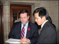 Nguyễn Tiến Trung và ông Derek Lee, phó chủ tịch Ủy ban Tư pháp và Nhân quyền tại Quốc hội Canada