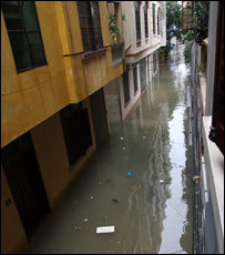 Lục tung các trang báo điện tử của Việt Nam, tôi hoàn toàn không tìm thấy bất kỳ một dòng cảnh báo mưa lũ nào. Dự báo thời tiết hôm trước thì nói là chỉ mưa rải rác, khoảng 20mm thôi. Thế mà đường phố đã ngập mênh mông.