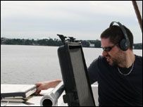 May mà trên thuyền còn một kỹ thuật viên ngồi trực kịp dọn dẹp, nếu không cả đống máy tính và thiết bị biên tập để ngổn ngang trên boong đã ướt hết, hoặc rơi xuống sàn. Và các phóng viên đang ở trên bờ thì ở chỗ nào mắc kẹt lại chỗ đó để trú mưa, giết thời gian bằng chuyện phiếm và đùa giỡn, chụp hình với đám con nít, vài giờ sau sóng êm gió lặng mới lên xuồng ra chỗ neo thuyền. Kế hoạch định ghé một khu bảo tồn rùa vào buổi chiều coi như vậy là bị hủy, con tàu chạy thẳng ra sông lớn tiếp tục xuôi dòng, còn cả đoàn phóng viên được bù lại bằng một bữa cá chép hấp lò vừa mới mua lúc sáng. Ngồi nhấm nháp từng miếng thịt nhỏ ngọt và béo ở miếng đầu cá, tôi chợt nhớ lại tâm sự của những người dân không phá rừng vì muốn giữ môi trường sống của họ, và giải thích chuyện phá rừng đa số là do dân nhập cư làm vì thiếu ý thức. Họ khiến tôi liên kết với lời tâm sự của một doanh nhân nghề gỗ, rằng tư duy mua hàng mà không thèm quan tâm tới nguồn gốc và phương pháp khai thác hay canh tác thực sự còn tàn phá rừng và môi trường nhiều hơn. Và cả vấn đề chia nguồn lợi kiếm được từ rừng nữa; một nhà hoạt động cộng đồng ̣đưa ví dụ loại hương liệu từ cây Pau Rosa để làm nước hoa Chanel 5, ở châu Âu thương lái mua bán với giá hàng chục ngàn đô-la trong khi tại chốn rừng sâu người khai thác chỉ kiếm được vài chục đô-la cho một galon hàng.