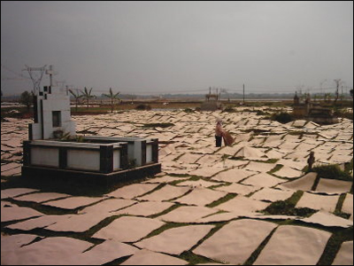 Khi không phải mùa lúa nông dân ở Hà Tây tận dụng rơm và giấy vụn để làm giấy bồi và đem phơi ngoài ruộng. (Ảnh Juho Lilja, Helsinki)