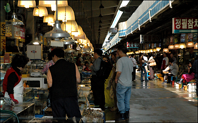 Một góc chợ cá Norangjin phía nam Seoul với hàng ngàn quầy bán đủ loại đồ biển, vốn được người Hàn vô cùng yêu thích.
