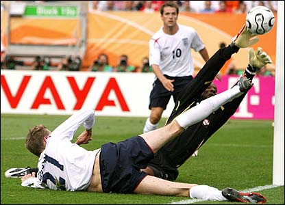 Peter Crouch có cơ hội làm bàn nhưng không qua được thủ môn Shaka Hislop.
