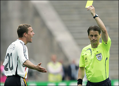 Lukas Podolski nhận thẻ vàng ngay ở mấy phút đầu