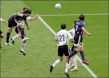Phút 17, Michael Ballack có cú đánh đầu nguy hiểm