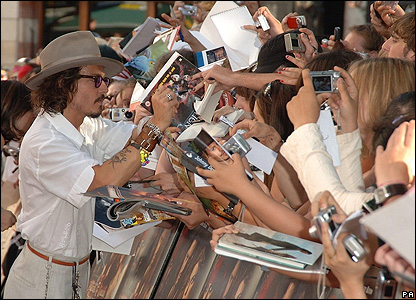 Johnny Depp, nam diễn viên chính trong phim Pirates of the Caribbean, là một trong các ngôi sao dự buổi ra mắt phim ở châu Âu, tổ chức ở London
