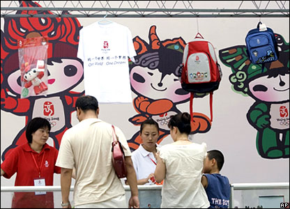 Hàng hóa có hình Olympic cũng đang bán được cho khách