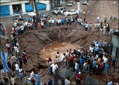 Những người dân ở Beirut đứng xem hố bom do Israel không kích
