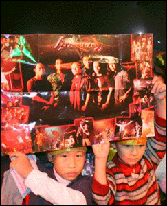 Hai thiếu nhi là fan của ban nhạc Bức Tường tới nghe ban nhạc chơi buổi biểu diễn chia tay Last Saturday gần đây.
