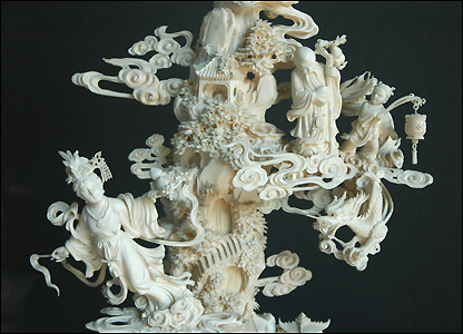 Trưng bày tại đây đặc biệt có các tác phẩm điêu khắc từ ngà voi hay ngọc thạch được thực hiện vô cùng tinh xảo.