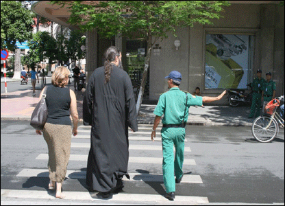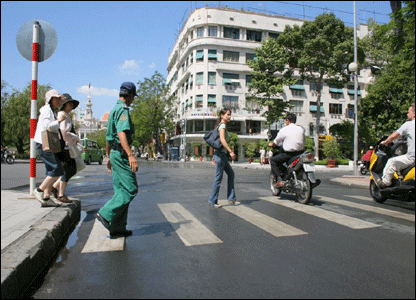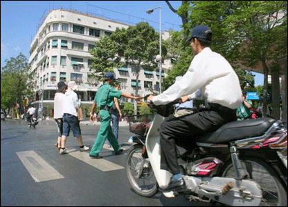 Ông Walter người Đức nói đi khắp các châu lục chưa thấy nơi nào có người đưa mình sang đường như ở Sài Gòn