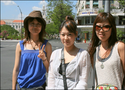 Ba cô gái Nhật đến Sài Gòn du lịch. Tại Nhật các điểm đèn đỏ còn có tiếng còi báo để người khiếm thị nhận biết
