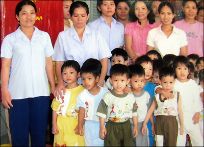 Theo tấm ảnh cũ này thì đứa bé đó là Phạm Quang Sáng (áo vàng), 3 tuổi 4 tháng, hồi đó bị bỏ rơi ở bệnh viện Từ Dũ.