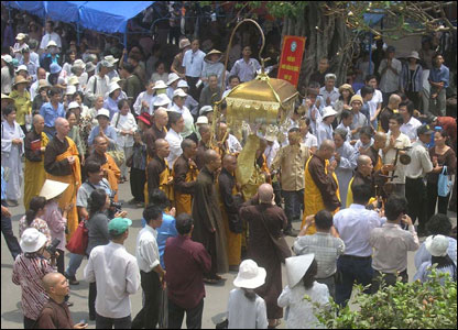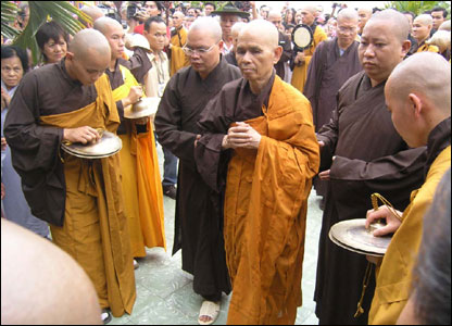 Đại chúng cung kính đón Thiền Sư Thích Nhất Hạnh.