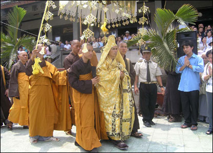 Chư tăng đang chuẩn bị lên đường đi rước các vong linh về chùa.