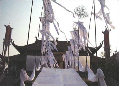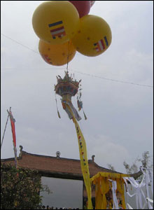 Lá phan (phướn) sau lễ khai mạc được thượng lên trước sân chùa Vĩnh Nghiêm để chiêu hồn người oan khuất về nghe kinh siêu độ.