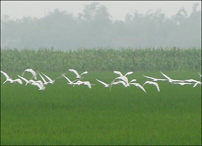 Mùa Xuân về trên đồng quê. Lúa đang thì con gái, xanh tươi mơn mởn. Ngô đang độ đơm bông. Xa xa xóm làng còn chìm trong màn sương sớm. Đàn cò trắng bay lượn tự do, thoải mái. Cuộc sống vùng thôn quê thật sự thanh bình. | |||||||||||||||||||||||||||||||||||||||||||||||||||||||||||||||||||||||||||||
