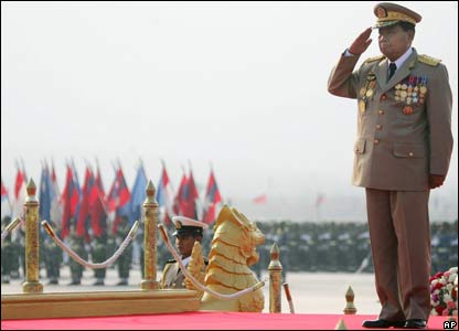 Lãnh đạo ít khi xuất hiện của Miến Điện, tướng Than Shwe, có mặt tại buổi duyệt binh. Ông này hiện đang sống trong một khu nhà được xây như một pháo đài ở phía đông thủ đô.