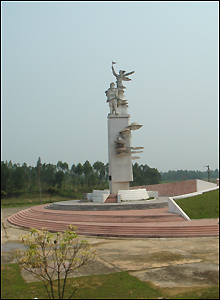 Tượng đài chiến thắng Đồng Lộc, phía trên là biểu tượng của lực lượng Thanh niên xung phong, bộ đội, công nhân giao thông, công an, dân quân du kích.