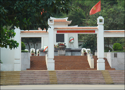 Bên cạnh khu mộ là bia đá ghi bài thơ của nhà thơ Vương Trọng trong đó có câu: "Mười bát nhang, hương cắm thế đủ rồi. Còn hương nữa hãy dành phần người khác. Ngã xuống nơi đây đâu chỉ có chúng tôi..."