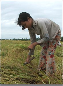 Cứ vào vụ thu hoạch lúa, hàng ngàn thợ gặt từ khắp nơi đổ về khu vực ĐBSCL để thu hoạch lúa thuê thay cho máy móc vì nền nông nghiệp Việt Nam chưa được cơ giới hóa nhiều. Gia đình bà Nga (Kiên Lương, Kiên Giang) gồm 5 người đã đi gặt lúa thuê gần 20 năm nay. Bà Nga cho biết sau vụ gặt (khoảng 2 tháng), trừ hết chi phí, cả gia đình bà cũng kiếm được khoảng 7 triệu đồng.