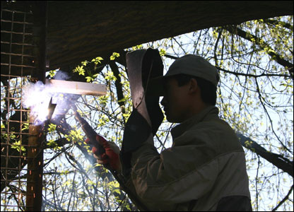 Thợ hàn mùa xuân. Anh Hùng đang làm việc cho nhà văn hóa Thăng Long.