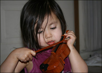 Bé cũng chuẩn bị biểu diễn đàn violon cho cả nhà vui.