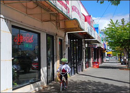 Trưa vắng khách trong khu phố Việt Nam ở Seattle.