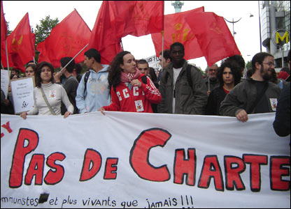Anh Chiboit JCR là thành viên của tổ chức Thanh niên Cách mạng Cộng sản (JCR), cho biết cuộc biểu tình được tổ chức nhằm để cảnh báo về "chủ nghĩa Sarkozy" trong giáo dục hay việc muốn trục xuất những người không có giấy tờ đang cư trú tại Pháp.
