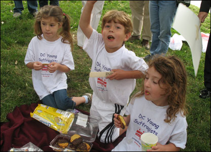 Sau khi hô vang "Hãy cho DC quyền biểu quyết" và hát "Bạn có thượng nghị sỹ không, có thượng nghị sỹ không...', các nhà hoạt động nhỏ tuổi quay ra ăn quà vặt dưỡng sức.