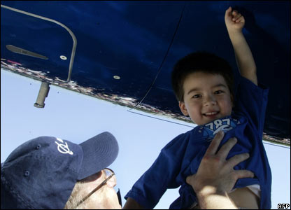 Một nhân viên của Boeing giúp cậu con trai của mình chạm tới máy bay mà mình đã cùng làm việc.