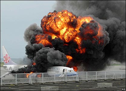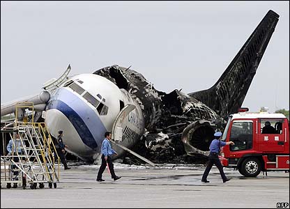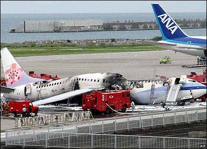 Chỉ ít phút sau khi hạ cánh xuống sân bay Naha thuộc đảo Okinawa của Nhật, chiếc Boeing 737-800 của hãng hàng không Đài Loan China Airlines đã bốc cháy.