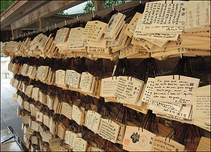 Người Nhật và người nước ngoài để lại giá những thẻ bài ghi lời cầu nguyện. Hiếm thấy một vị vua châu Á nào khác được người không theo Thần đạo sùng kính như thế này.