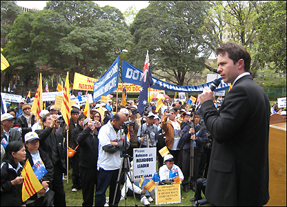TNS Kerry Nettle, Ðảng Xanh, Quốc hội Liên bang Úc: ''Chính sách của chúng tôi đặt trên căn bản con người. Ðảng Xanh đã và sẽ tiếp tục đặt vấn đề giao thương có điều kiện với các chế độ đang xâm phạm nhân quyền và đàn áp dân chủ.''