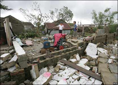Hàng chục ngàn ngôi nhà bị sập. Ba người thiệt mạng và 58 người bị thương.
